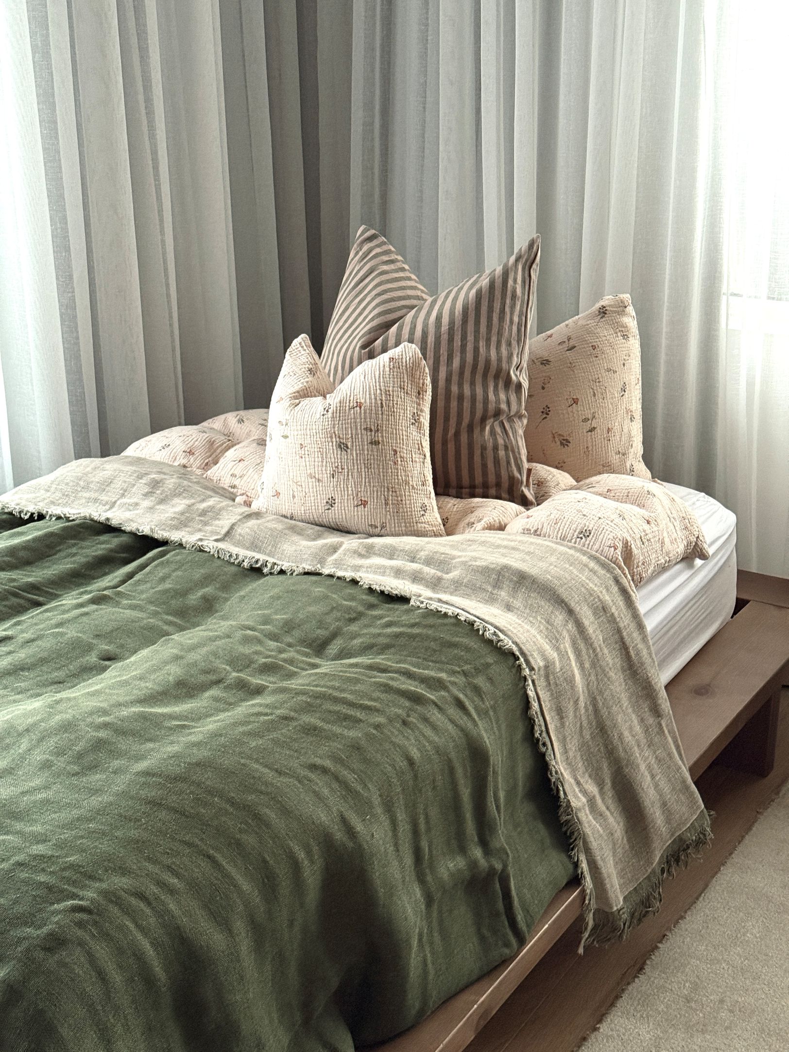 Fjara er létt og fallegt hörteppi sem sameinar náttúrulega áferð og mjúk litbrigði í einfaldri, norrænni hönnun. Teppið fellur mjúklega yfir sófa, rúm eða stól eða sófa og setur hlýlegt og rólegt yfirbragð á rýmið.
