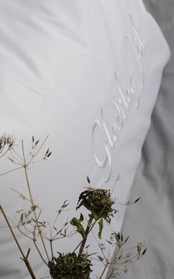 Koddaverin eru ofin úr 380 þráða bómullarblöndu, sem gefur þeim mjúka, þétta og glæsilega áferð. Þessi efnisgæði tryggja langa endingu og lúxus-tilfinningu í notkun.