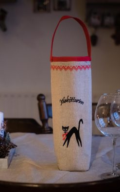 Þessi fallegu jólaflöskupokar eru skreyttir með bróderuðum myndum af jólakettinum eða Grýlu, og gefa jólaborðinu hlýlegt og skemmtilegt yfirbragð.
