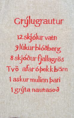 Grýlu svuntan er ofin uppskrift að jólagrautnum hennar Grýlu, vonandi finnur hún engin óþekk börn til að setja í grautinn.