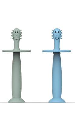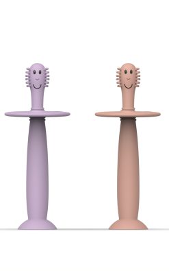 Burstararnir eru með mjúkum burstum sem nudda viðkvæmt tannhold og hreinsa fyrstu tennurnar á mildan hátt. Sogskál neðst heldur burstanum uppréttum á yfirborði og kemur í veg fyrir óhreinindi. Auðvelt að halda á og fullkomið fyrir smáa fingur.