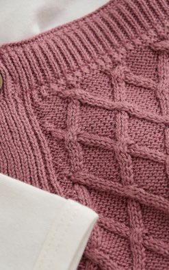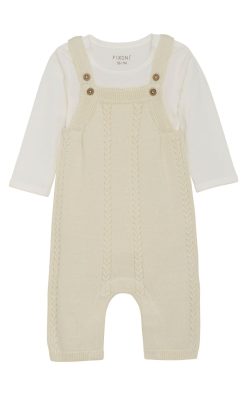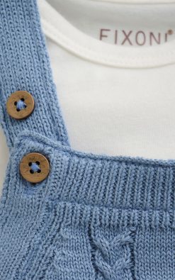 Fallegt prjónasett úr Fixoni AW25 sem inniheldur samfellu og prjónaðar smekkbuxur. Samfellan er einlit með smellum á öxl og milli lappa. Smekkbuxurnar eru prjónaðar úr mjúkri lífrænni bómull með hnöppum á axlaböndum og smellum milli lappa. Í boði í náttúruhvítt, rósableikt og ljósblátt. GOTS – organic CERES-0366 vottun.